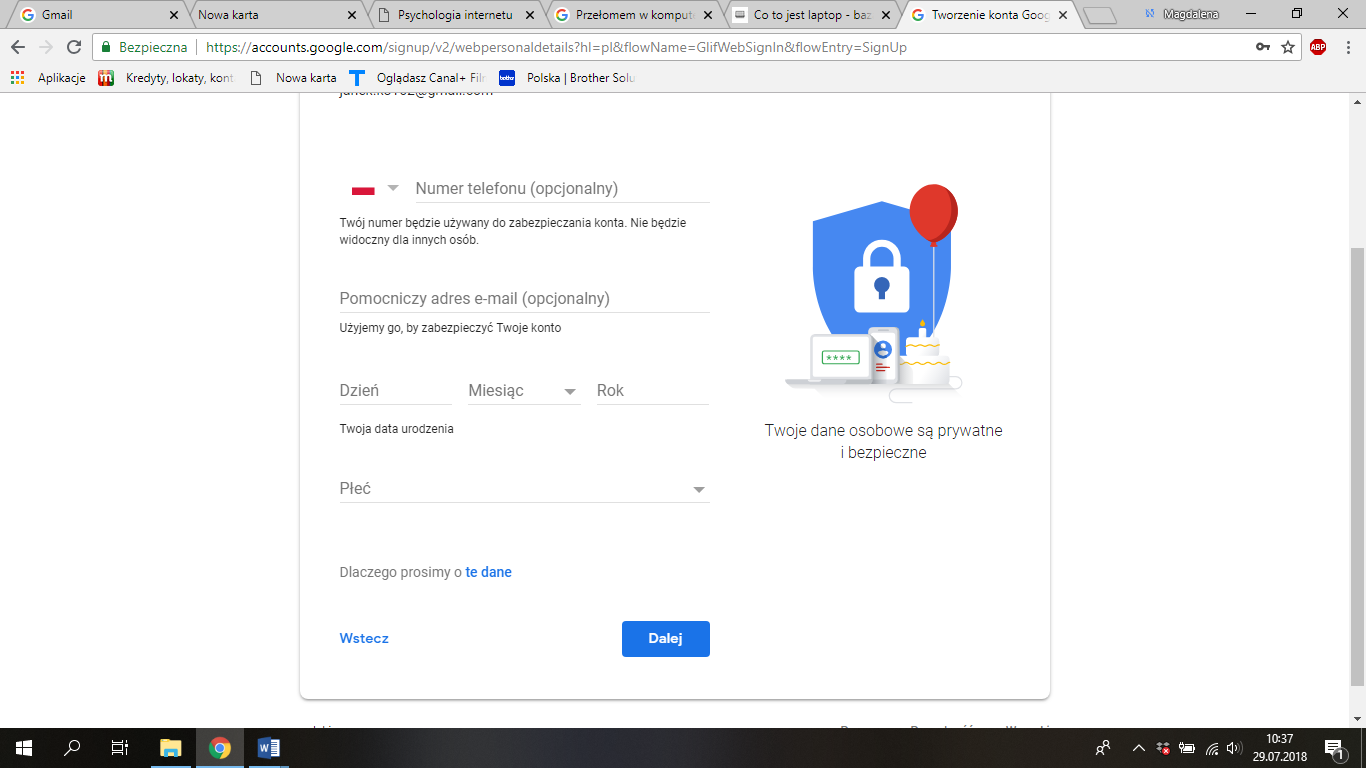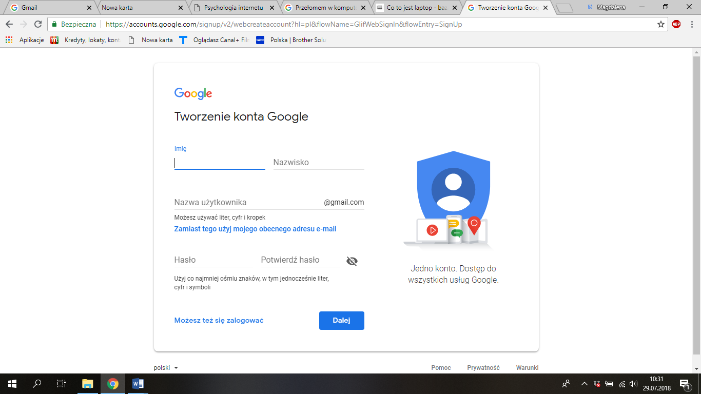 - - Twoja nowa skrzynka pocztowa Gmail zostanie utworzona.