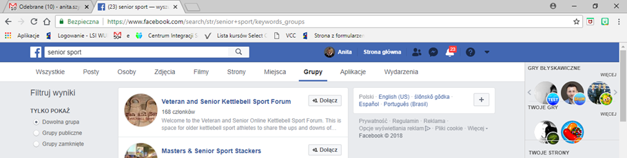 Poprzez Facebooka można dołączyć do grup tematycznych związanych ze sportem