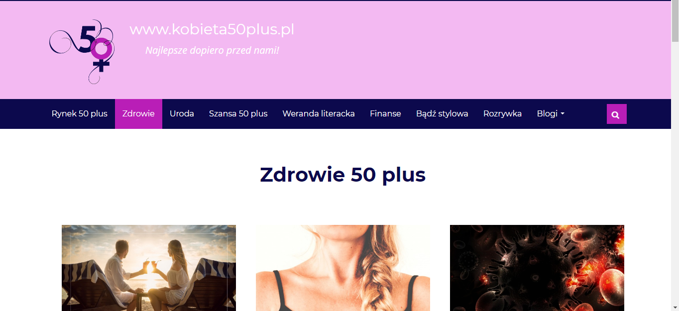 4. http://www.kobieta50plus.pl/ - Na portalu Kobieta 50 Plus znajdziemy dużo informacji na temat zdrowia, urody, mody, fryzur dla pań po 50-tce. Na stronie znajduje się forum, 50 plus blog, 50 plus zdjęcia.